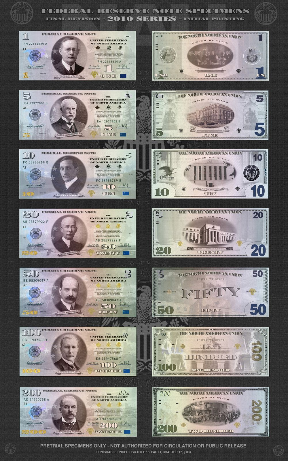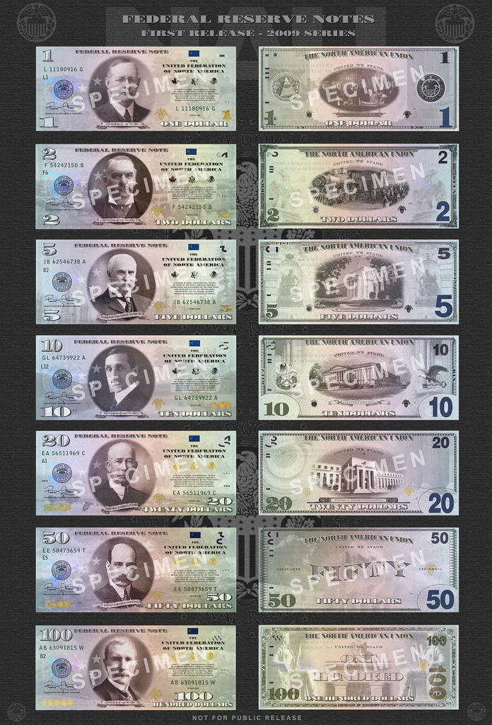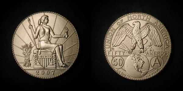 minted as denominations of the Amero. They are said to be minted by