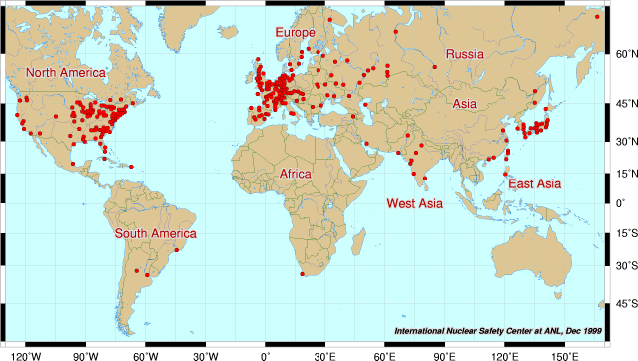 Database of active nuclear reactors