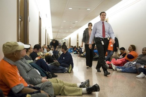 streamed in. I was in a group of about 50 peaceful protestors who sat